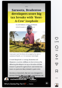 READ THE FULL INVESTIGATION: Sarasota, Bradenton developers score big tax breaks with “Rent-A-Cow” loophole