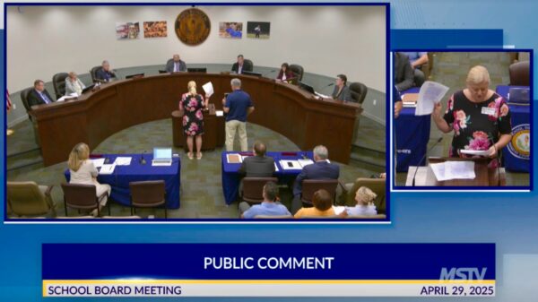 Parent Ann Mitchell appeared before the Manatee County School Board on April 29 demanding accountability for the way the district handled allegations of misconduct involving a fifth-grade teacher toward her 11-year-old daughter. | Video still from a Manatee County School District meeting