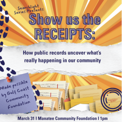 Suncoast Searchlight will host two, free public workshops focused on accessing public records, one of the most powerful, and often overlooked, tools available to everyday citizens. The events are part of the newsroom’s ongoing community engagement series, presented in partnership with Gulf Coast Community Foundation.