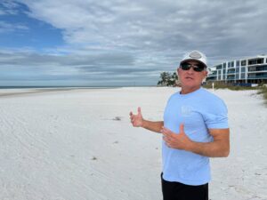 Siesta Beach Lots owner Michael Holderness stands on beachfront property that he currently owns but is expected to trade with Sarasota County after years of litigation about what he can and can not do on the land. In exchange, the county will give him another piece of nearby land. | Photo by Derek Gilliam, Suncoast Searchlight