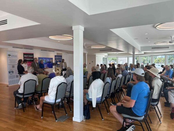Nearly 90 people gathered to hear panelists talk about the region’s mounting, interconnected pressures — the growing presence of microplastics in marine life, water resources stretched thin, ecosystems fragmented over time and growth patterns that continue to alter the landscape. | Photo by Samantha Ramlall, Suncoast Searchlight