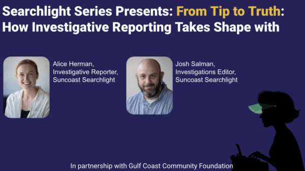 Suncoast Searchlight journalists answered these and other questions during a one-hour event designed to take readers inside the reporting process, explain how investigative decisions are made and create space for open conversation between journalists and the communities they serve.